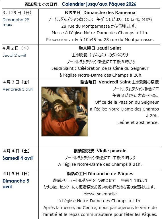 パリ日本人共同体は朗読、日本語の聖歌などに協力をいたします。