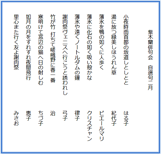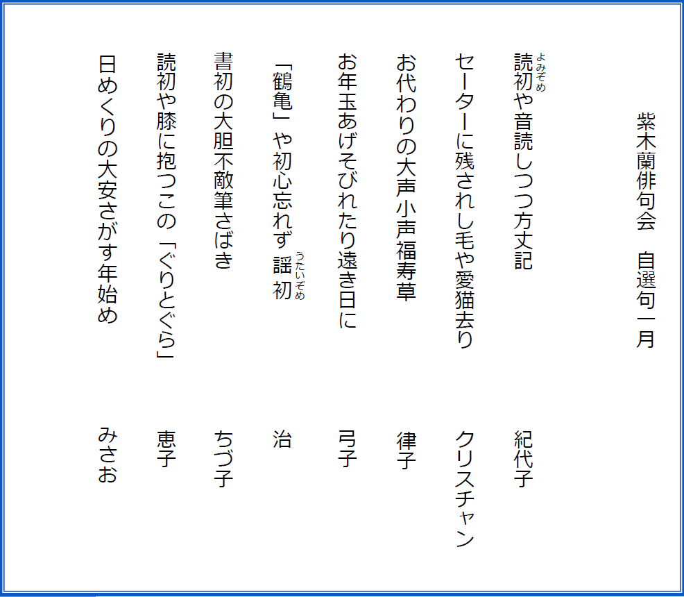 姉はお金には恬淡としていました。生活も質素でいわゆるブランド物には全く興味を示しませんでした。日本人がグッチだディオールだと目の色を変えてお店に殺到するのを不思議がっていました。日本では飛行機にはめったに乗らず、新幹線で九州の親戚を訪ねるのが常でした。帰国前に割引のJRのレールパスを購入、移動はいつも陸路、列車の方が景色も見られるし駅弁も買えるからいいと言っていました。「汽車の旅 牡蠣の駅弁 思いつつ」は「紫木蘭会」の自選句にあります。